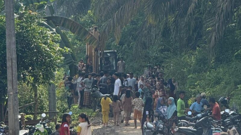 Evakuasi alat berat jenis excavator sempat mengalami hambatan setelah diduga adanya penghadangan oleh sejumlah warga sejak sekitar pukul 13.00 WIB. Massa berkumpul di akses jalan menuju lokasi, sehingga proses pemindahan alat ke mobil trado tidak dapat berjalan lancar.