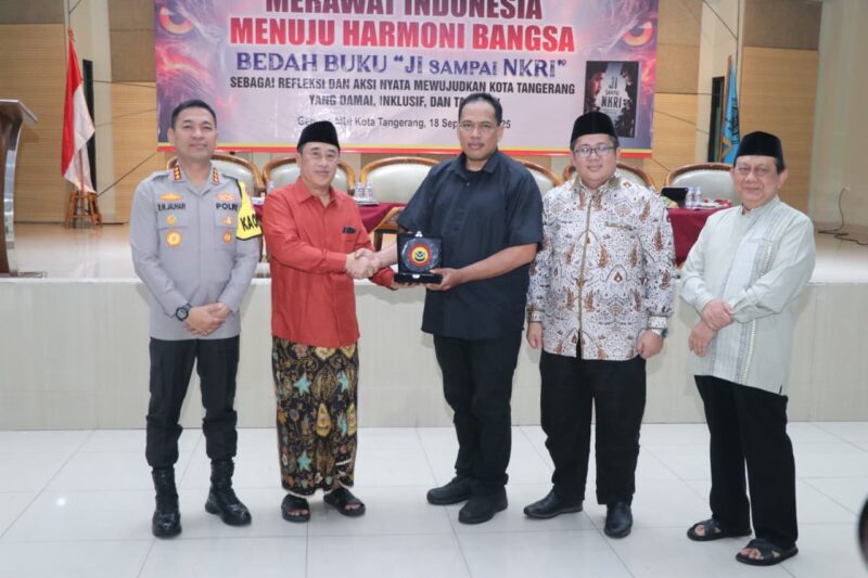 KOTA TANGERANG – Majelis Ulama Indonesia (MUI) Kota Tangerang bersama sejumlah tokoh agama, akademisi, dan aparat penegak hukum menggelar acara Bedah Buku “JI Sampai NKRI” di Aula Gedung MUI Kota Tangerang, Kamis (18/9). Acara ini mengusung tema “Merawat Indonesia, Menuju Harmoni Bangsa” sebagai refleksi dan aksi nyata mewujudkan kota yang damai, inklusif, dan tangguh.