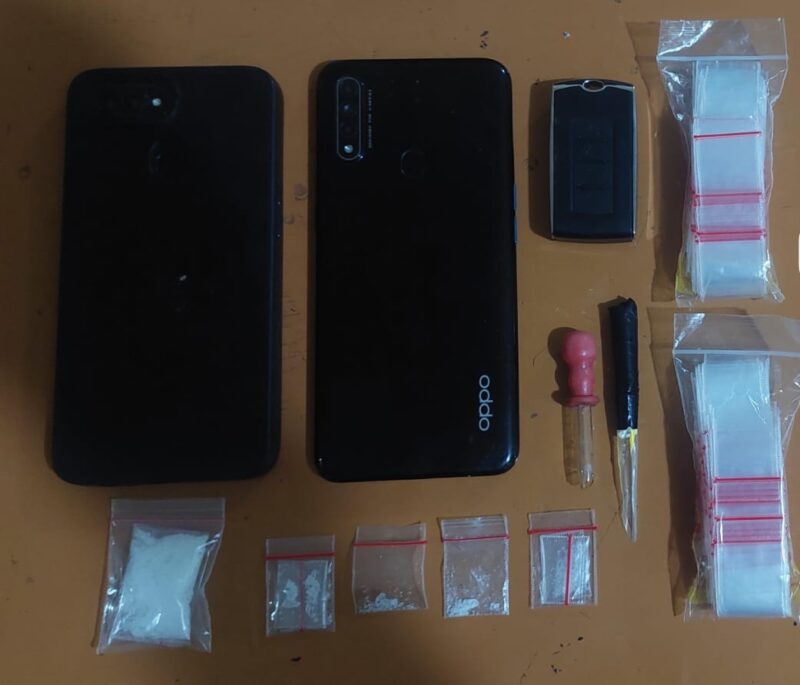 Setelah dibuntuti sampai sebuah kontrakan di Gang Jambul, Kampung Alas Tua, petugas memastikan keduanya membawa sabu. Saat dilakukan penggeledahan, ditemukan sebuah dompet putih berisi: satu klip besar sabu; 4 klip kecil sabu; dua handphone; satu pipet.