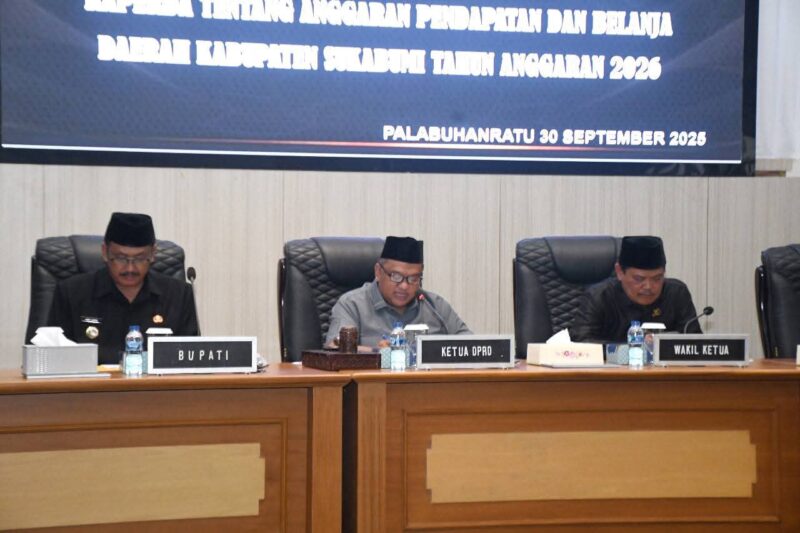 SUKABUMI – Bupati Sukabumi H Asep Japar menyampaikan nota pengantar Rancangan Peraturan Daerah (Raperda) tentang Anggaran Pendapatan dan Belanja Daerah (APBD) Kabupaten Sukabumi Tahun Anggaran 2026 dalam Rapat Paripurna DPRD, di Ruang Sidang DPRD Kabupaten Sukabumi, Selasa (30/9/2025).