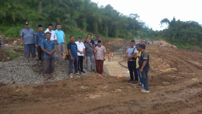 Camat Siabu Sudarajat Putra Batubara SH.MH bersama beberapa Kades meninjau langsung Rehabilitasi/ pembangunan Saluran Irigasi BWS II DI Batang Angkola yang jebol di Desa Aekbadak Jae kec
