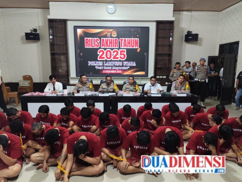 LAMPUNG UTARA – Polres Lampung Utara mencatatkan capaian signifikan sepanjang tahun 2025 dengan berhasil mengungkap ratusan kasus tindak pidana, narkoba, serta meningkatkan kinerja penanganan lalu lintas. Hal tersebut disampaikan dalam Konferensi Pers Akhir Tahun 2025 yang digelar pada Rabu (31/12/2025).