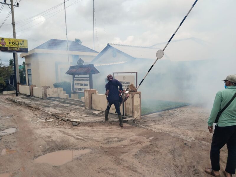 TULANG BAWANG — Dalam upaya menjaga kesehatan lingkungan serta melindungi masyarakat dari ancaman Demam Berdarah Dengue (DBD), Polsek Dente Teladas, Polres Tulang Bawang, Polda Lampung, melakukan kegiatan fogging di seluruh area Markas Komando (Mako) dan lingkungan sekitarnya pada Selasa, 9 Desember 2025 sekitar pukul 10.30 WIB.