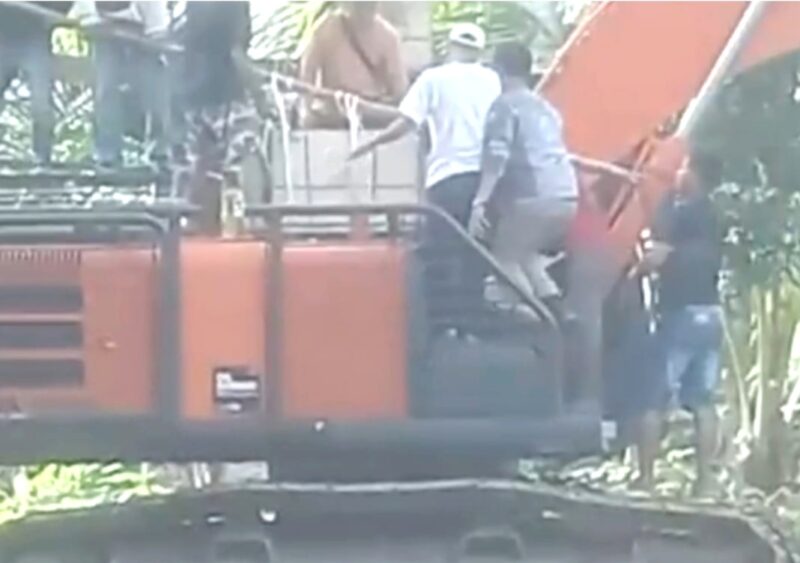 Saat awak media melakukan penelusuran ke lokasi pada Sabtu (28/2), salah seorang warga yang enggan disebutkan namanya membenarkan bahwa alat berat tersebut masuk melalui wilayah mereka.