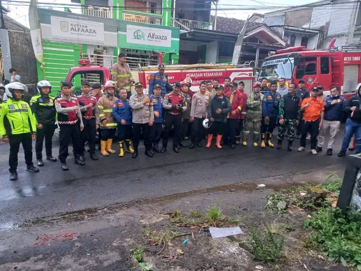 Tim Damkarmat Kabupaten Sukabumi bergerak cepat menuju lokasi kejadian untuk melakukan pemadaman dan penanganan agar api tidak meluas ke bangunan lain di sekitarnya.