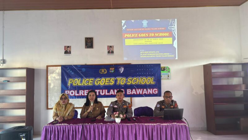 LAMPUNG – Senin, (06/10/2025) Satuan Lalu Lintas (Satlantas) Polres Tulang Bawang melalui Unit Keamanan dan Keselamatan (Kamsel) melaksanakan kegiatan “Polisi Goes to School” di SMKN 1 Banjar Margo. Kegiatan yang berlangsung sejak pukul 08.00 WIB ini diikuti oleh 81 siswa serta 8 guru pendamping.