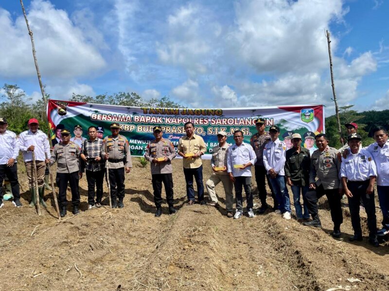 SAROLANGUN – Dalam upaya mendukung program pemerintah terkait ketahanan pangan, Kapolres Sarolangun AKBP Budi Prasetya, S.IK. MSI. menggelar penanaman Jagung ditanah Kas Desa seluas -/+3Ha bersama dengan Pemerintahan Desa Sungai Keramat Kecamatan Cerminan Gedang (CNG). Kegiatan berlangsung dalam suasana santai dan hikmad namun produktif. Sabtu (7/6/25).