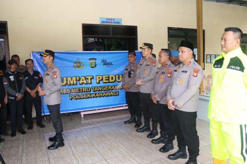 Kegiatan Jum’at Peduli dipimpin langsung oleh Kapolres Metro Tangerang Kota Kombes Pol. Dr. Raden Muhammad Jauhari, S.H., S.I.K., M.Si., didampingi Wakapolres serta Pejabat Utama Polres Metro Tangerang Kota dan jajaran Polsek Karawaci.