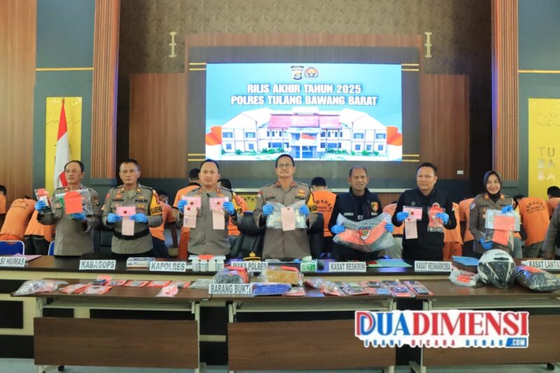 TUBABA — Polres Tulang Bawang Barat (Tubaba) Polda Lampung menggelar Rilis Akhir Tahun 2025 yang dipimpin langsung oleh Kapolres Tulang Bawang Barat AKBP Sendi Antoni, S.I.K., M.I.K., Rabu (31/12/2025).