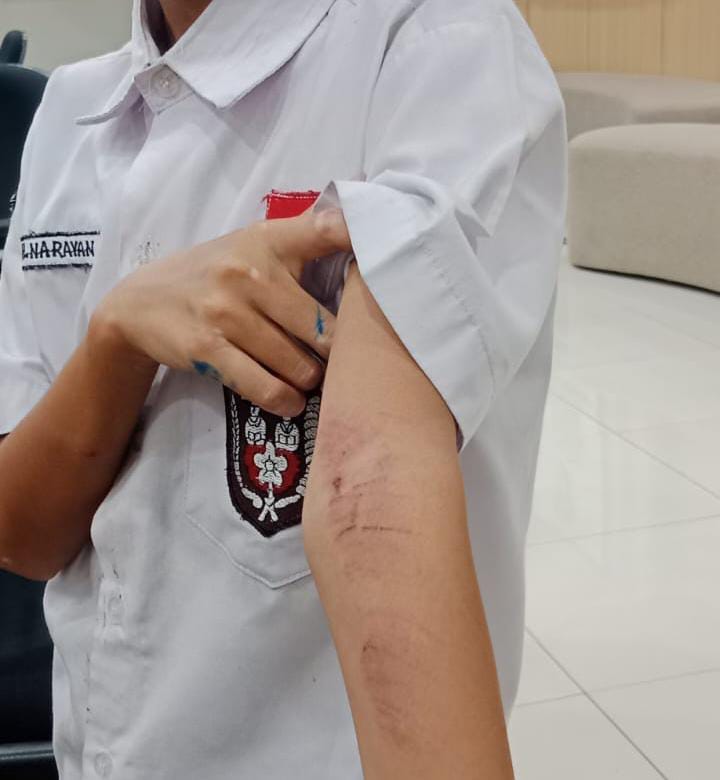 “Mendapatkan perlakuan seperti itu, saya langsung menuju pihak kepolisian untuk membuat laporan atas hal kekerasan yang di alami anak saya,” ujarnya.