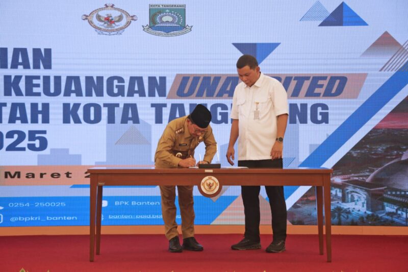 KOTA TANGERANG – Wali Kota Tangerang, H. Sachrudin, bersama Sekretaris Daerah dan jajaran Perangkat Daerah terkait di lingkungan Pemerintah Kota Tangerang, menyerahkan Laporan Keuangan Pemerintah Daerah (LKPD) unaudited Tahun Anggaran 2025 ke BPK Perwakilan Provinsi Banten.