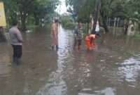 Lurah Joglo Rizki Deni Ananda saat meninjau genangan di jalan Azka (Photo dia dimensi. com)