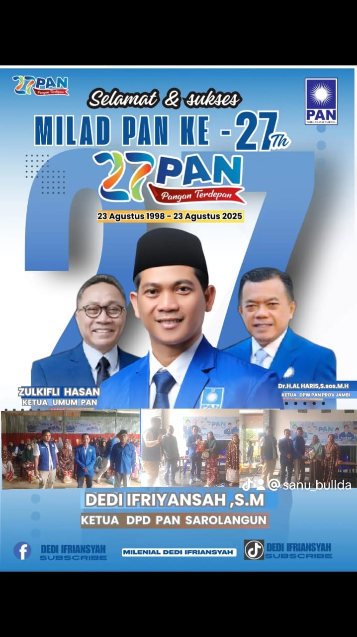 milad partai pan ke 27 ketua dpd pan sarolangun dedi ifriansyah bagikan pangan untuk warga di kecamatan limun
