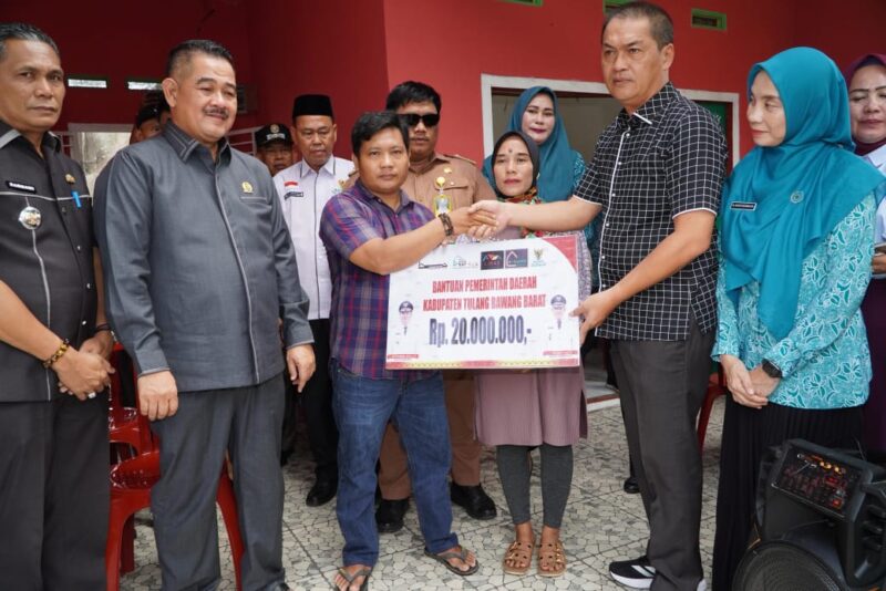 LAMPUNG – Pemerintah Kabupaten Tulang Bawang Barat (Tubaba) menunjukkan kepedulian nyata terhadap warganya yang tertimpa musibah. Pada Senin (23/06/2025), Bupati Tubaba Ir. Novriwan Jaya, S.P. menyerahkan langsung bantuan sosial kepada Sumarno, korban kebakaran di Tiyuh Pagar Dewa, Kecamatan Pagar Dewa.
