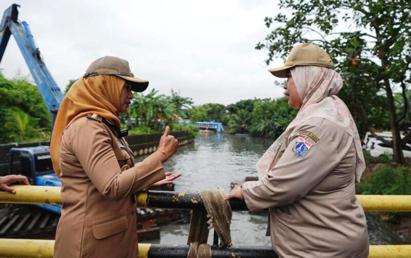 JAKARTA – Wali Kota Jakarta Barat, Iin Mutmainnah, meninjau langsung kegiatan pengerukan sedimen di Kali Sepak, RW 03 Kelurahan Kembangan Utara, Kecamatan Kembangan, Selasa (13/1). Kegiatan ini merupakan bagian dari langkah strategis Pemerintah Kota Administrasi Jakarta Barat dalam mengantisipasi potensi banjir dan genangan.