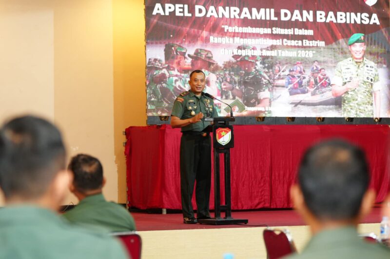 TANGERANG– Komandan Korem (Danrem) 052/Wijayakrama, Brigjen TNI Faisal Rizal, S.I.P., memberikan arahan langsung sekaligus penguatan tugas pokok teritorial kepada para Danramil, Batuud, dan Babinsa jajaran Korem 052/Wkr. Kegiatan tersebut dilaksanakan dalam Apel Danramil dan Babinsa yang berlangsung di Aula Islamic Village, Karawaci, Tangerang, Kamis (8/1/2026).