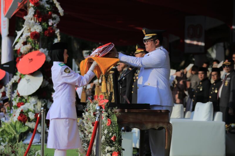 “Setiap pelajar Kota Tangerang berhak mendapat kesempatan yang sama untuk berkontribusi, tidak hanya mereka yang terpilih sebagai Pasukan Pengibar Bendera (Paskibra), tetapi seluruh pemuda dapat menjadi bagian dari perjuangan bagi bangsa,” demikian pesan Wakil Wali Kota Tangerang, H. Maryono Hasan, usai memimpin Upacara Penurunan Bendera Merah Putih pada peringatan HUT ke-80 Kemerdekaan RI di Alun-Alun Ahmad Yani, Minggu sore (17/08/2025).