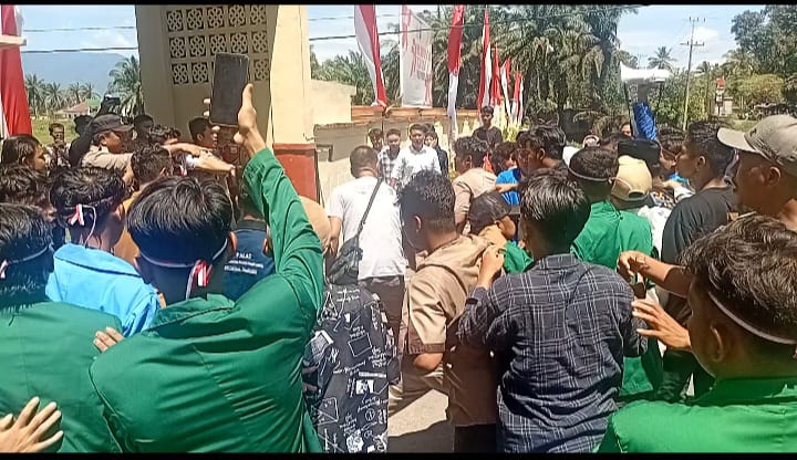 Tampak Kasat Sabhara Polres Palas menjumpai para massa mahasisswa menyampikan kalau boleh agar perwakilan saja yang menjumpai Kapolres, namun para mahasiswa tidak bersedia mereka minta tidak ada perwakilan, harus kami semua sebab kami satu ungkap koordinator aksi melalui Toa alat pengeras suara. Akibat dari itu sihingga aksi dorong mendorong digerbang Mapolres tak terhindarkan hingga nyaris ricuh.