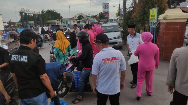 TANGERANG — Kelompok Sadar Keamanan dan Ketertiban Masyarakat (Pokdar Kamtibmas) Polsek Teluk Naga bersama jajaran kepolisian menggelar kegiatan sosial dengan membagikan ratusan paket takjil gratis kepada masyarakat, Kamis (12/3/2026).