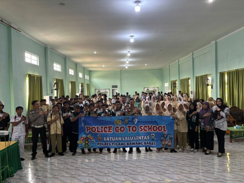 TUBABA – Sebagai upaya meningkatkan kesadaran berlalu lintas di kalangan Pelajar Sejak Usia Dini, Satuan Lalu Lintas (Satlantas) Polres Tubaba Polda Lampung menggelar kegiatan edukasi bertajuk Police Goes to School Sosialisasikan Undang-Undang No 22 Tahun 2009 tentang lalu lintas dan angkutan jalan di SMKN 01 Tulang Bawang Tengah, Kec Tulang Bawang Tengah Kab.Tulang Bawang Barat, Kamis (09/10/2025).