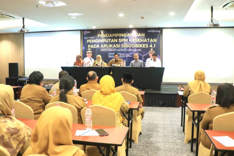 menghadirkan performa terbaik dalam pelaksanaan Standar Pelayanan Minimal (SPM) Kesehatan. Di antaranya dengan menggelar kegiatan Pendampingan dan Penginputan SPM Kesehatan menggunakan aplikasi Siscobikes 4.1, Selasa (24/06/2025), di Ballroom Hotel Vega, Kabupaten Tangerang.