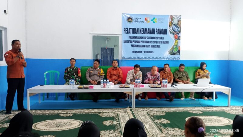 TUBABA – Lampung Dinas Kesehatan Kabupaten Tulang Bawang Barat (Tubaba), Provinsi Lampung memberikan pelatihan keamanan pangan kepada para pengelola dan penjamah makanan di Satuan Pelayanan Pemenuhan Gizi (SPPG) Tirta Makmur sebagai langkah menjaga kualitas program Makan Bergizi Gratis (MBG).