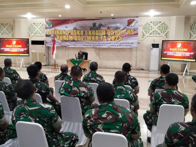 TANGERANG – Danrem 052/Wijayakrama, Brigjen TNI Faizal Rizal, S.I.P., secara resmi menutup kegiatan Latihan Posko I Kodim 0510/Tigaraksa. Jam Pimpinan penutupan digelar di Aula Masjid Agung Al Amzad, Komplek Pemda, Tigaraksa, pada hari Kamis (30/10/2025).