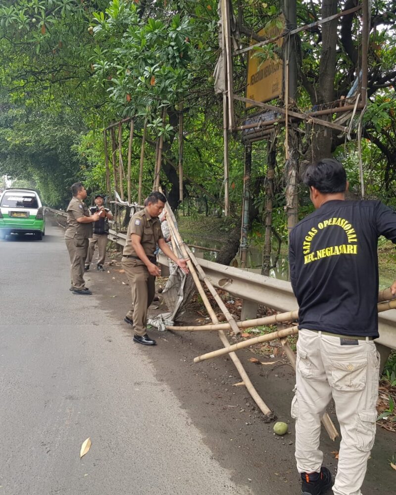 Trantib Kecamatan Neglasari Kota Tangerang Gelar Operasi Spanduk Komersil Tanpa Izin