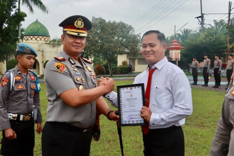 SAROLANGUN – Kepolisian Resor (Polres) Sarolangun menggelar upacara pemberian penghargaan serta penyerahan tanda kehormatan kepada personel berprestasi di halaman Mapolres Sarolangun, Rabu (29/01/26) pagi.