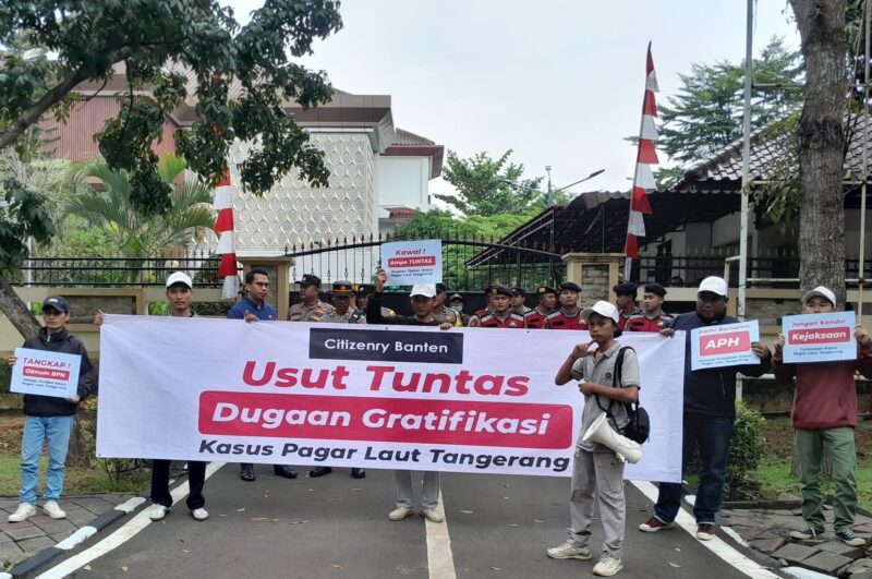 “Aksi kami hari ini sebagai bentuk dukungan moril kepada Aparat Penegak Hukum (APH) untuk melanjutkan proses pengusutan hingga tuntas kasus Pagar Laut Tangerang,” Ungkap Koordinator Citizenry Banten, Fale Wali usai Aksi, Kamis, (14/08/2025).