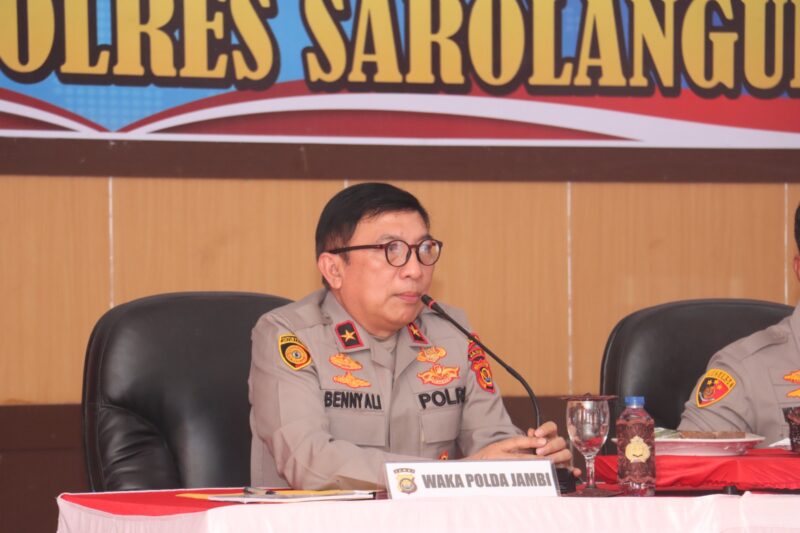 SAROLANGUN – Wakapolda Jambi, Brigjen Pol. Benny Ali, S.I.K., S.H., melaksanakan kunjungan kerja dan tatap muka dengan jajaran Polres Sarolangun pada Rabu (15/4/2026) sore. Kegiatan berlangsung di Mapolres Sarolangun dalam suasana aman, tertib, dan kondusif.